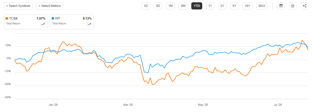 KRE - Third Coast Bancshares: Lower Deposit Costs Drive Surge In Net Interest Margin August, 02 2025 09:10 AM SPDR S&P Regional Banking 2025-08-02 09:10:01 ET Introduction So far in 2025, Third Coast Bancshares ( TCBX ) has marginally underperformed the iShares U.S. Financials ETF ( IYF ), delivering a gain of 7%: TCBX vs. IYF in 2025 (Seeking Alpha) ... For further details see: Third Coast Bancshares: Lower Deposit Costs Drive Surge In Net Interest Margin