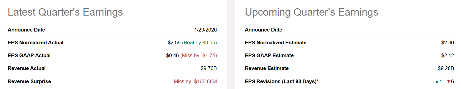 Honeywell International Inc. ( HON ), a $138-billion market cap conglomerate, reported its Q4 earnings update yesterday. They basically beat only on the adjusted EPS (by 2.14%), missing the revenue consensus by 1.62% or ~$161 million (that was the first miss since mid-2024). The portfolio transformations and the costs of spinning off businesses in 2026 have mostly led to negative revisions on both the top and bottom lines (especially for the nearest Q1 2026 quarter):